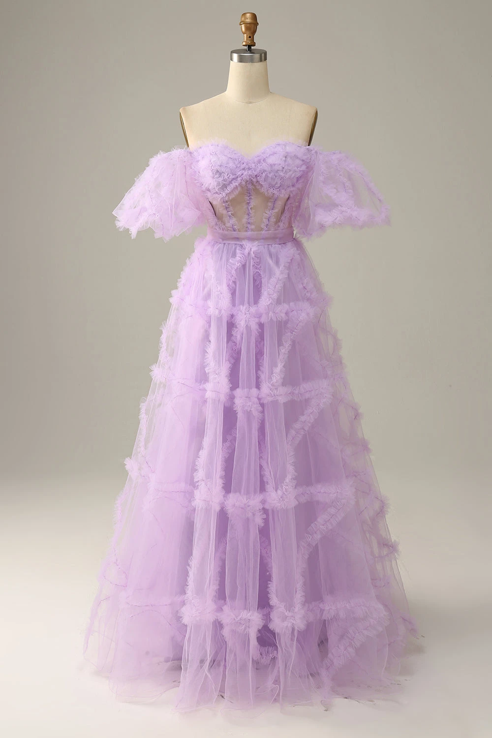 Fabric: Tulle. The fabric is high quality and comfortable for skin.