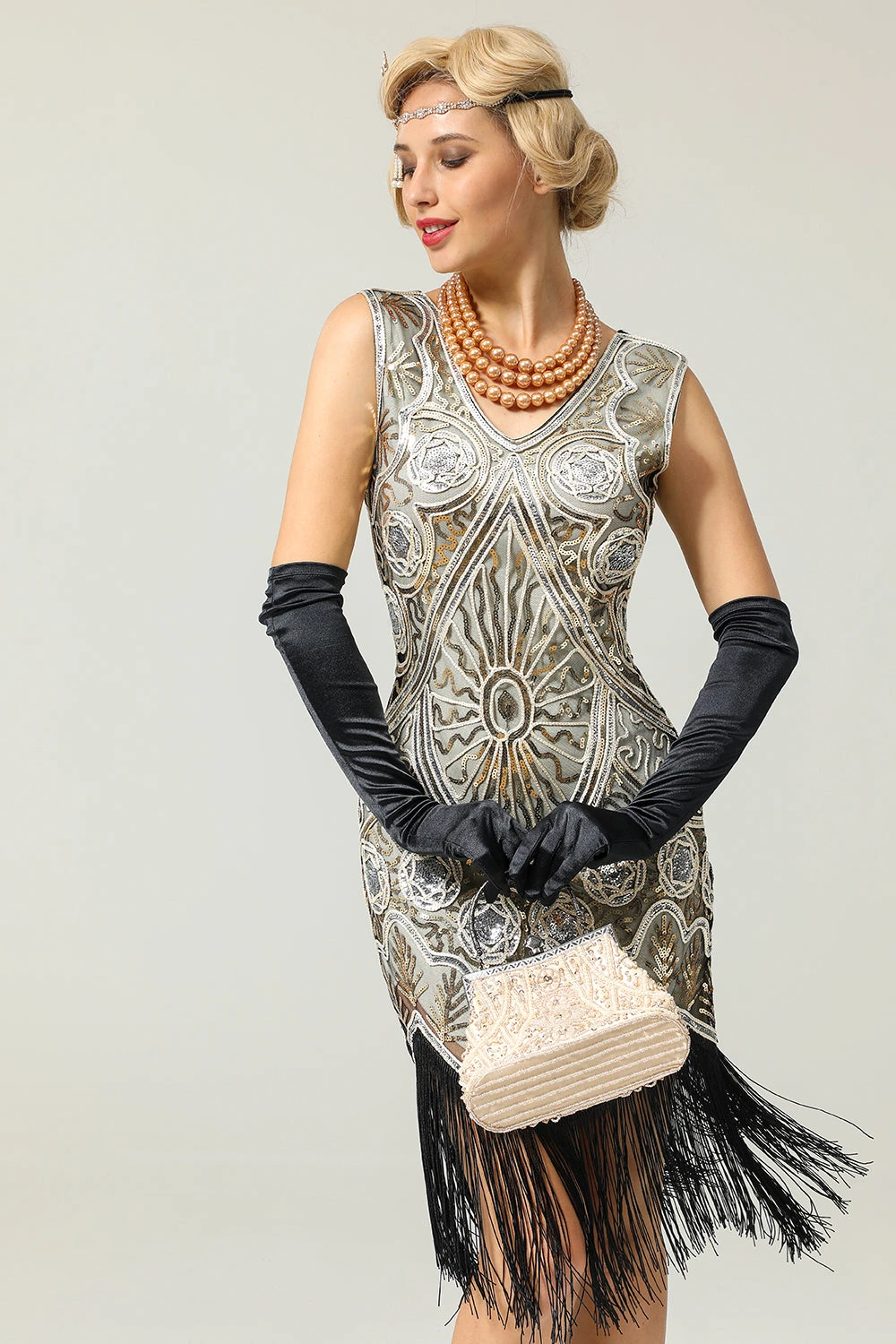 Classic Match: Pair this 1920s dress with special accessories will make you shining in a crowd.